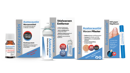 Die Acetocaustin Lösung 2ml kennt fast jede(r) in der Apotheke, es hilft ja auch schon seit 1956 (!). Seit Kurzem gibt es zusätzlich drei weitere Produkte dieser Marke, natürlich nur in der Apotheke: