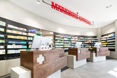 Der Eingang der Apotheke wurde verlegt, um sich dem anschließenden Einkaufsmarkt zuzuwenden. Die Kunden können nun ihren Besuch in der Apotheke mit ihrem alltäglichen Einkauf verbinden. Auch die Offizin ist neu strukturiert und vergrößert. Bei der Möblierung allein sollte es nicht bleiben. Zusätzlich sind Fassade, Beleuchtung und Fußboden neu gekommen- und das bei laufendem Betrieb.