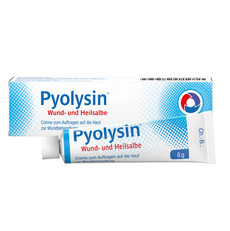 Zusammensetzung: 100,0 g enth. Wirkstoffe: Pyolysin-Kulturfiltrat (entspr. 1,2-1,8% Trockensubstanz (m/V)) 24,89 g (hergestellt aus jeweils partikelfrei filtrierten und lysierten Kulturen von: Zellen von Escherichia coli, Pseudomonas aeruginosa, Streptococcus pyogenes, Enterococcus faecalis, Staphylococcus aureus), Zinkoxid 6,9 g, Salicylsäure 0,5 g; Sonst. Bestandteile: Phenol (0,11 g als Konservierungsmittel für das Wirkstoff-Gemisch), weißes Vaselin, Glycerolmonooleat, Octadecylstearat, dünnfl. Paraffin, Hartparaffin, gereinigtes Wasser. Anwendungsgebiete: Empirisch bei oberflächlichen Wunden, z.B. als Adjuvans bei Ulcus cruris. Gegenanzeigen: Überempfindlichkeit gegenüber den Inhaltsstoffen. Nebenwirkungen: Sehr selten Kontaktallergien.