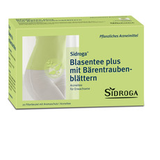 Der Sidroga Blasentee plus mit Bärentraubenblättern enthält zusätzlich Goldrutenkraut sowie Birken- und Orthosiphonblätter. Bei Bärentraubenblättern ist eine antibakterielle Wirkung bekannt, sodass diese zur Reduktion des bakteriellen Befalls beitragen können.1
