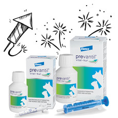 Bad Homburg - Der Jahreswechsel mit lauten Böllern und Raketen ist für die meisten Hunde und Katzen mit Stress verbunden. Viele Tierhalter suchen daher jetzt Rat, wie sie ihr Tier am Silvesterabend unterstützen können. Eine wertvolle Empfehlung kann in diesen Fällen die frühzeitige Gabe der Prevantil® Vital-Kur von Elanco sein. Mit den enthaltenen natürlichen Inhaltsstoffen wie Kaktusfeige, Ginseng und Vitamin B 12 kann sie helfen, das Nervenkostüm und die Widerstandsfähigkeit von Hunden und Katzen rund um die Feiertage gezielt zu fördern.