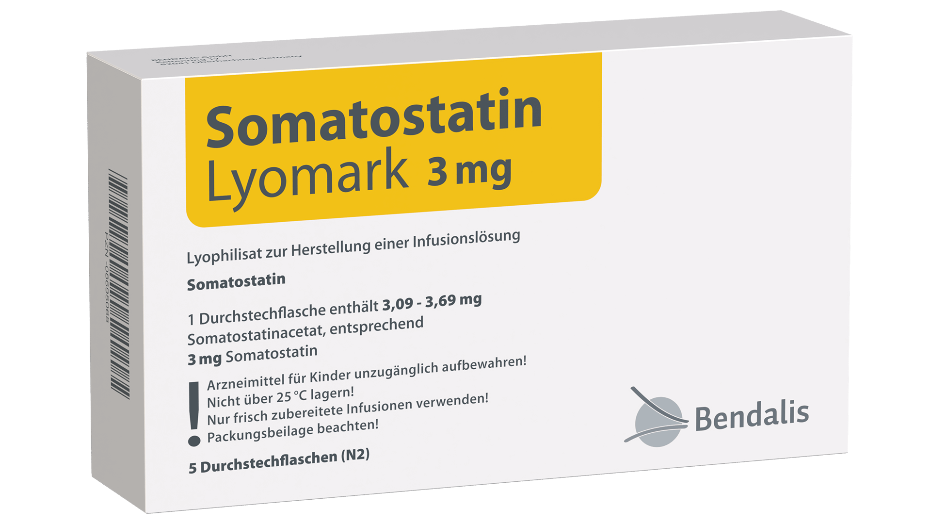 Die Bendalis GmbH mit Sitz in Oberhaching freut sich mitteilen zu können, dass Somatostatin Lyomark 3mg wieder lieferbar ist. Somatostatin Lyomark 3mg, bereits bekannt von der Lyomark Pharma, wurde in das Portfolio der Bendalis GmbH übernommen. Die Bendalis GmbH, Tochtergesellschaft der Lyomark Pharma, ist somit neuer Zulassungsinhaber von Somatostatin Lyomark 3mg.