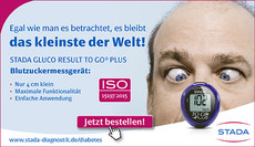 Bad Vilbel - STADA GLUCO RESULT TO GO®PLUS ist das ideale Messgerät für mobile Menschen. Das nur 4 cm kleine Gerät lässt sich im beigefügten Täschchen oder mit einer Schutzhülle überall hin mitnehmen und eignet sich somit perfekt für die schnelle, unkomplizierte und sichere Messung unterwegs. Ebenfalls praktisch: es kann direkt auf den Teststreifenbehälter aufgeschraubt werden und so stehen Messgerät, Teststreifendose und Stechhilfe mit nur einem Griff zur Verfügung. Das STADA GLUCO RESULT TO GO® PLUS bietet maximale Funktionalität im minimalen Format und ist damit eine gute Empfehlung für alle Kunden, die viel unterwegs sind, trotzdem aber Wert auf Komfort und eine zuverlässige Messgenauigkeit legen.