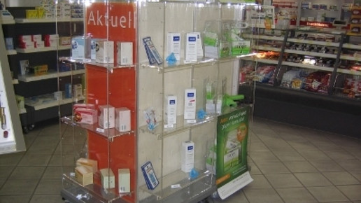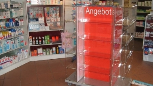 Zitat: Nochmals herzlichen Dank für die Super-Lieferung. Wir alle, mein Team und ich, einschließlich der Putzfee, sind total begeistert, weil die schönen Acrylelemente die Apotheke frisch und jünger erscheinen lassen. Der Glanz der Schränke spiegelt so schön das Licht, dass es insgesamt in der Apotheke viel edler und heller aussieht. Also nochmals schönen Dank, auch an Ihren Mitarbeiter, der mit der Unebenheit des Bodens kämpfen mußte.