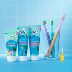 TePe Daily Baby™ (1.000 ppm Fluorid) wurde für die ersten Zähne und Kinder bis zu 2 Jahren entwickelt. Sie schmeckt neutral ohne Zusatz von Geschmacksstoffen und bildet keinen Schaum – das erleichtert den Eltern das Putzen und Heranführen an das Zähneputzen. TePe Daily Kids™ (Fluoridgehalt 1.000 ppm) wurde für Kinder zwischen 3 und 6 Jahren optimiert. Sie hat einen extra milden Minzgeschmack, verzichtet aber ebenfalls auf Schaumbildner.