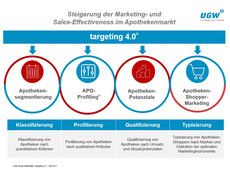 targeting 4.0 ist das Resultat einer Vielzahl von Projekten zur Optimierung der Kundensegmentierung und -strukturierung im Apothekenmarkt. Dabei werden alle am Markt und im Unternehmen verfügbaren relevanten Daten als Grundlage für die effektive Planung und Umsetzung von Marketingmaßnahmen und für eine kosteneffiziente Vertriebssteuerung strukturiert zusammengefasst. Im Gegensatz zu anderen Ansätzen verbindet das targeting 4.0 darüber hinaus in einzigartiger Weise die Erkenntnisse aus einer transparenten Apothekenstrukturierung unmittelbar mit den Anforderungen an ein leistungsfähiges "Shopper-Marketing" in der Apotheke.