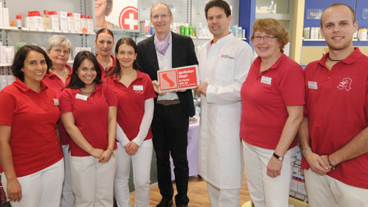 Thomas von Künsberg Sarre unterstrich: „Diese Auszeichnung dokumentiert zum einen, wie sehr wir uns täglich für unsere Kunden einsetzen. Zum anderen ist das Apothekensiegel für uns Auftrag und Verpflichtung, auch in Zukunft zu den Besten zu gehören. Und davon profitieren unsere Kunden bei jedem Besuch hier in der Markus-Apotheke.“