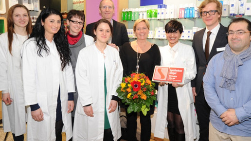 Als zwei der ersten Apotheken Stuttgarts haben die Apotheke Königsbau sowie die Markus Apotheke das komplette Prüfverfahren abgeschlossen, das in seiner Breite und Tiefe einzigartig ist und Anerkennung in Fachkreisen und der Politik findet. Beide Apotheken erreichten mit 93 Punkten in der Hauptprüfung das Gesamturteil "sehr gut" und dürfen sich zu den besten Apotheken Deutschlands zählen. Stuttgarts Bürgermeisterin Dr. Susanne Eisenmann unterstrich mit ihrer Anwesenheit und ihrem Grußwort die zentrale Bedeutung der Apotheken für die Gesundheitsversorgung und beglückwünschte die Apothekeninhaber Jochen Schulze sowie Thomas von Künsberg Sarre zu ihrem beispielhaften Erfolg. Zahlreiche Kunden folgten den Einladungen der Apotheker und nahmen an der feierlichen Siegelübergabe teil, um persönlich zu gratulieren.