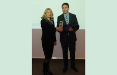 Mathias Hevert, Geschäftsführer von Hevert-Arzneimittel, überreicht den Dr. Wolfgang Hevert-Preis 2010 an die Gewinnerin Dr. rer. nat. Elke Jeschke