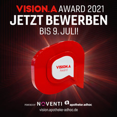 Berlin - Healthcare-Held:innen aufgepasst: Zum sechsten Mal werden am 1. September 2021 innovative Konzepte, erfolgreiche Kampagnen, beeindruckende Initiativen und Persönlichkeiten aus dem Apotheken-, Pharma- und Gesundheitsmarkt ausgezeichnet. APOTHEKE ADHOC verleiht gemeinsam mit dem Exklusiv-Partner NOVENTI die begehrten VISION.A Awards. Neben den wunderschönen Awards winken auch 2021 Mediabudgets von mehr als 50.000 Euro. Ob revolutionäres Projekt, mutige Kampagne für den Weg aus der Krise oder fesselnder Podcast: Die Bewerbung ist bis zum 9. Juli 2021 möglich, und zwar kostenlos.
