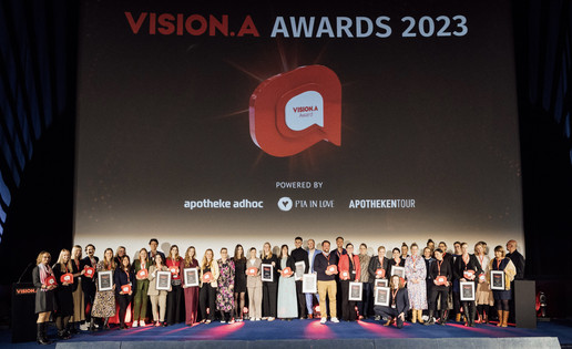 Berlin - Das Geheimnis ist gelüftet: Die diesjährigen VISION.A Awards wurden am Dienstag im Anschluss an die VISION.A Zukunftskonferenz powered by APOTHEKE ADHOC, PTA IN LOVE und APOTHEKENTOUR feierlich im Kino International in Berlin verliehen. Viele spannende Projekte und Personen hatten sich beworben, 20 von ihnen haben es geschafft und eine der begehrten Trophäen sowie Mediabudgets im Gesamtwert von 50.000 € gewonnen.