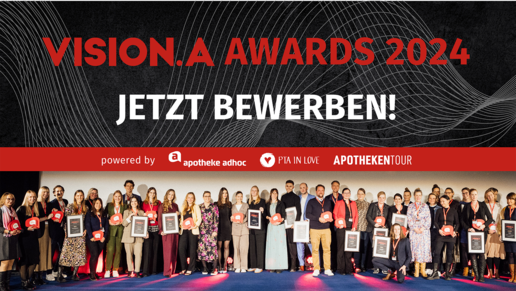 Berlin - Die VISION.A Awards 2024 stehen vor der Tür! Bis zum 15. Juli haben innovative Köpfe, kreative Talente und engagierte Brancheninsider die Möglichkeit, ihre herausragenden Projekte im Bereich Apotheke und Pharma einzureichen. APOTHEKE ADHOC und PTA IN LOVE laden gemeinsam mit der APOTHEKENTOUR zur Teilnahme an den renommierten VISION.A Awards ein. Am 10. September 2024 werden sie im Wintergarten Varieté Berlin feierlich übergeben.