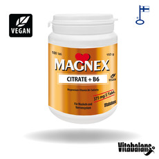 Magnex Citrate + B6 liefert 375 mg resorbierbares Magnesium in einer Tagesdosis von zwei Tabletten. Magnesium wird aus Magnesiumcitrat gewonnen, das in hoch resorbierbarer und bioverfügbarer Magnesiumform vorliegt.