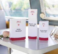 Bad Boll/Eckwälden - Vom 15. März bis zum 15. April 2019 können Apotheken das Aktionspaket „Die WALA Reiseapotheke“ bestellen. Es enthält drei Arzneimittel als nützliche Reisebegleiter: das Arnika Wundtuch zur Sofortbehandlung stumpfer Traumata, das Wund- und Brandgel bei Sonnenbrand, Schürfwunden oder Insektenstichen und die Gentiana Magen Globuli velati bei dyspeptischen Beschwerden. Alle drei Arzneimittel sind für jede Altersgruppe geeignet, bereits ab dem Säuglingsalter. Zusätzlich enthält das Aktionspaket 20 neue Flyer zur Abgabe an die Apothekenkunden. Ein geeigneter Aufsteller für diese wird automatisch mitgeliefert.
