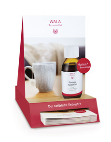 14. September 2019 können Apotheken ein WALA Aktionspaket für die ab Herbst anstehende Hustenzeit bestellen. Es enthält den natürlich wirksamen und gut verträglichen* WALA Plantago Hustensaft zum Barrabatt von 20 Prozent. Das Arzneimittel eignet sich auch für Schwangere, Stillende und Säuglinge. Ein kompaktes Verkaufsdisplay für den HV-Tisch weckt das Kundeninteresse. Eine übersichtliche Beratungskarte sowie Patientenflyer unterstützen die Verkaufsgespräche. Taschentücher und Tragetaschen für die Kunden runden das Aktionspaket ab. Auf Wunsch ist zudem ein attraktives Poster-Set (ein Poster fürs Schaufenster und ein Poster für den Kundenstopper) kostenfrei erhältlich. Optional können weitere Arzneimittel aus dem WALA Erkältungssortiment bestellt werden – ebenfalls mit 20 Prozent Barrabatt.