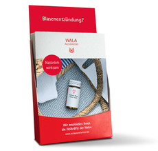 Bad Boll/Eckwälden - Noch bis zum 15. Juni 2019 können Apotheken das Aktionspaket „Natürliche Hilfe bei Blasenentzündung“ von WALA bestellen. Es enthält die Cantharis Blasen Globuli velati, die krampfartige Schmerzen lindern und die Entzündung hemmen. Gleichzeitig unterstützen sie die Harnausscheidung und damit die Durchspülung der Blase und der ableitenden Harnwege. Im Rahmen der Aktion erhalten Apotheken das in der Praxis bewährte Arzneimittel1 mit einem Barrabatt von 20 Prozent auf den Warenwert. Das Aktionspaket enthält 10 Packungen à 20 Gramm (PZN: 00081234) sowie ein aufmerksamkeitsstarkes Aufsteller-Set mit 20 Patientenflyern. Es kann beim WALA Kundenservice unter der Telefonnummer +49 (0)7146 930-134 bestellt werden (solange der Vorrat reicht).