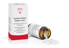 Zusammensetzung: In 10 g Globuli velati sind verarbeitet: Wirkstoffe: Achillea millefolium ferm 33d Dil. D2 0,1 g; Cantharis ex animale toto Gl Dil. D5 (HAB, Vs. 41c) 0,1 g; Equisetum arvense ex herba ferm 35b Dil. D2 (HAB, Vs. 35b) 0,1 g; Vesica urinaria bovis Gl Dil. D7 (HAB, Vs. 41c) 0,1 g. (Die Wirkstoffe werden über die letzten zwei Stufen gemeinsam potenziert.) Enthält Sucrose (Saccharose/Zucker). Anwendungsgebiete gemäß der anthroposophischen Menschen- und Naturerkenntnis. Dazu gehören: Harmonische Eingliederung der Empfindungsorganisation im Bereich der ableitenden Harnwege bei akuten und subakuten Entzündungserscheinungen, z. B. Entzündung von Blase, Nierenbecken und Niere (Cystopyelonephritis), Reizblase. Gegenanzeigen: Cantharis Blasen Globuli velati dürfen nicht angewendet werden bei Überempfindlichkeit gegen Schafgarbe oder andere Korbblütler. Warnhinweise: Enthält Sucrose. Nebenwirkungen: Es können Überempfindlichkeitsreaktionen auftreten. Das Arzneimittel ist dann abzusetzen und ein Arzt zu konsultieren. Stand: 03/2019.