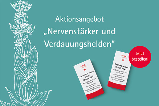 Noch bis zum 14. Dezember können Apotheken einzelne Arzneimittel individuell aus dem WALA Aktionspaket „Nervenstärker und Verdauungshelden“ bestellen. Dabei gilt der bewährte Barrabatt in Höhe von 20 Prozent auf alle in der Aktion enthaltenen Arzneimittel, unter anderem auf die Gentiana Magen Globuli velati und auf die Aurum/Apis regina comp., Globuli velati.