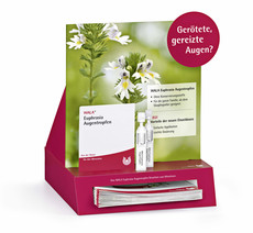 Auf Wunsch können zudem das Verkaufsdisplay „Euphrasia Augentropfen“ sowie ein Schaufensterdekorationsset kostenlos mitbestellt werden, welches folgende Elemente enthält: