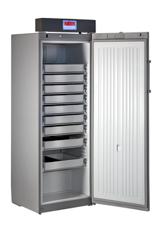 Außerdem verfügen die Kühlschränke über einen Ethernetanschluss für die Netzwerkanbindung und über integriertes W-LAN. Das große 7 Zoll Display erlaubt eine vereinfachte Dateneinsicht und -verwendung und macht nun auch einen PDF-Ausdruck der Daten möglich: per Knopfdruck vom Kühlschrank und bei Belieben auch ein Transfer der Daten zu einem separaten Apotheken-PC oder eben direkt auf den Drucker.