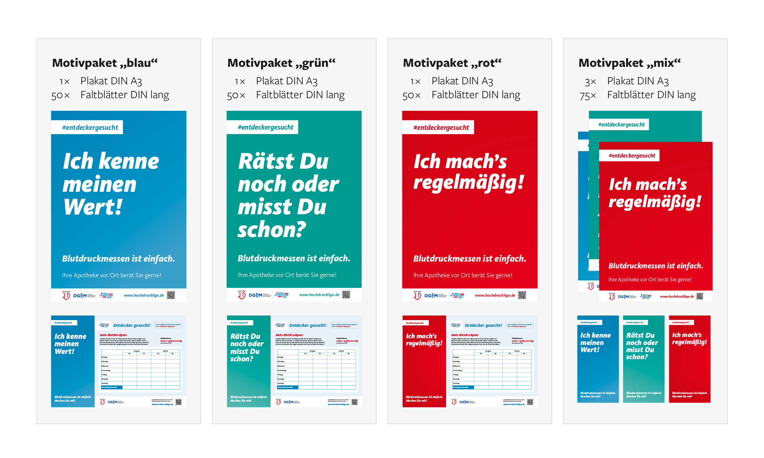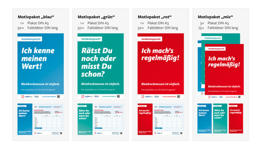 Mitarbeiter*innen in Apotheken können für eine frühe Diagnose von Bluthochdruck die Weichen stellen. Die Deutsche Hochdruckliga gibt Ihnen entsprechendes Beratungsmaterial an die Hand, das kostenlos angefordert werden kann. Zur Auswahl stehen verschiedene Motiv-Pakete mit Plakaten und Informationsflyern für Ihre Kund*innen.
