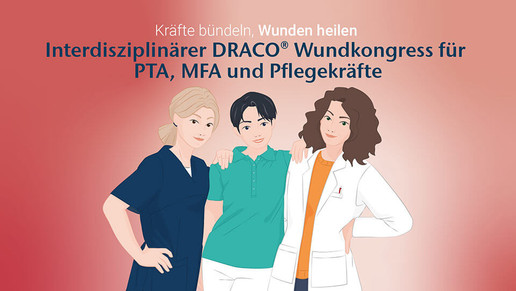 Wünschen Sie sich, dass diese Zusammenarbeit zwischen PTA, MFA und Pflegekräften besser funktioniert und Ihren Arbeitsalltag erleichtert? Dann seien Sie beim interdisziplinären DRACO® Wundkongress unter dem Motto „Kräfte bündeln, Wunden heilen“ dabei!