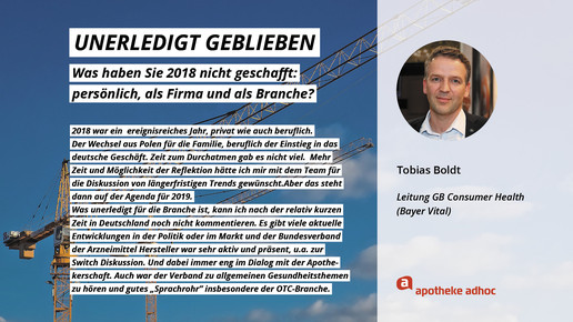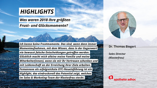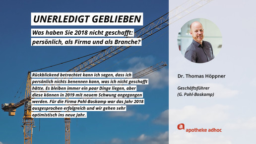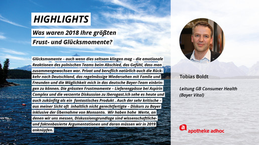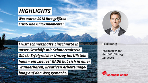 Was die Branche 2018 bewegt hat, was die größten Glücks- und Frustmomente waren und was unerledigt geblieben ist, verraten prominente Industrievertreter für den Jahresrückblick von APOTHEKE ADHOC.
