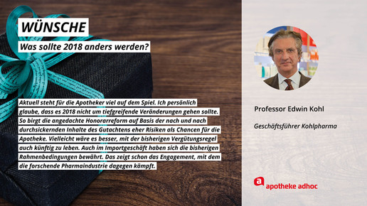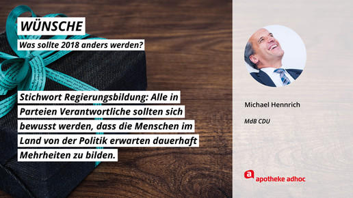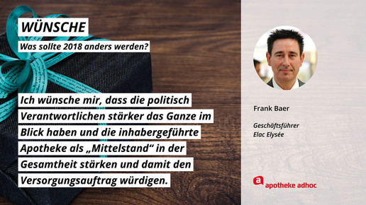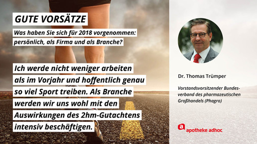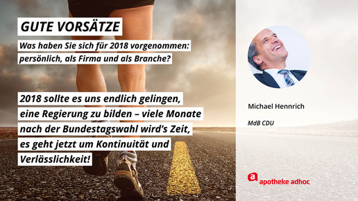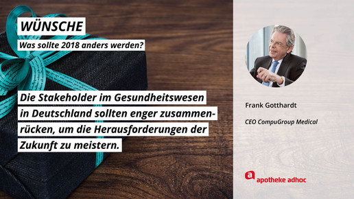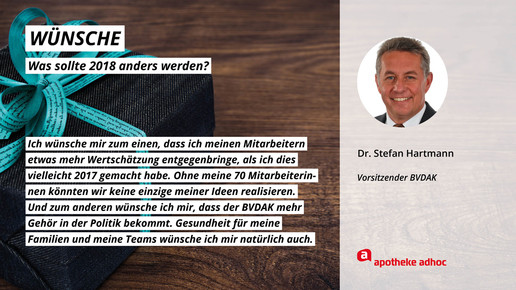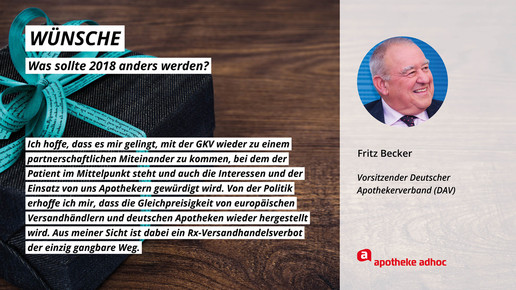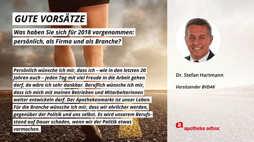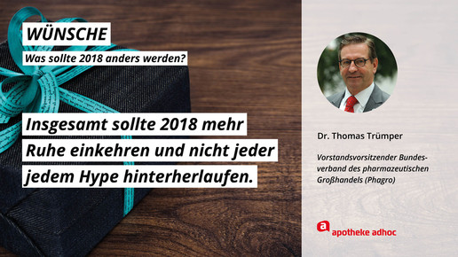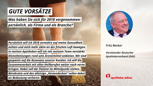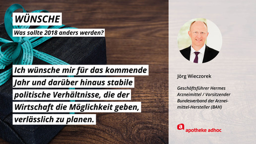 Was sich die führenden Köpfe der Branche für 2018 wünschen und was ihre Ziele und guten Vorsätze sind, haben sie APOTHEKE ADHOC für den Jahresausblick verraten.