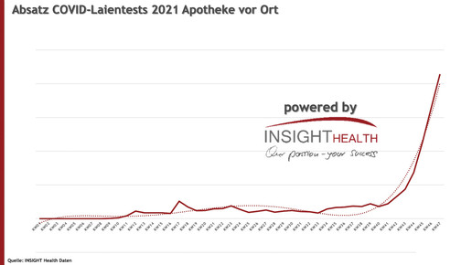 Auch bei Laientests zog der Absatz in der Apotheke massiv an.Grafik: Insight Health
