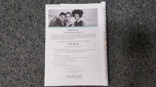 Douglas sucht nach PTA mit „großem Interesse an Lifestyle und aktuellen Trends“. Gefragt sind außerdem Kommunikationsfähigkeit und Freude am Umgang mit Kunden und Beratung sowie „gute MS Office-Kenntnisse“.Screenshot
