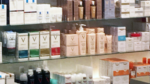 Das Sortiment ist weder besonders breit noch tief. Vertreten waren aber prominente Marken, unter anderem Eucerin, Vichy, La Roche-Posay und Nuxe – nach Bekunden der Hersteller gegen deren Willen.Foto: Douglas PRO/Alexander Gnädiger