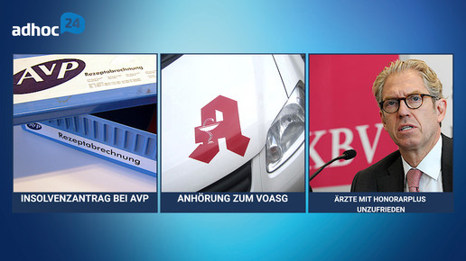 AvP-Insolvenzantrag, Anhörung zum Apothekenstärkungsgesetz (VOASG) im Bundestags und die Ärzte sind mit der geplanten Honorarerhöhung nicht zufrieden. Die wichtigsten Nachrichten des Tages im Video.