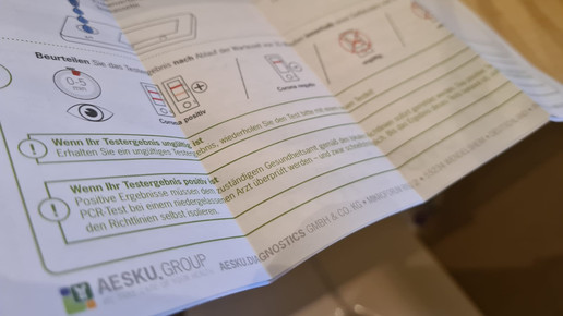 Der Discounter Aldi verkauft seit Samstag Antigen-Schnelltests. Die Produkte vom Hersteller Aesku liegen nicht in Regalen aus, sondern werden ausschließlich an der Kasse abgegeben.