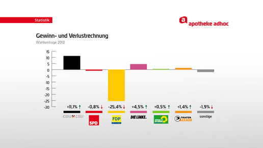 Bei der APOTHEKE ADHOC Wahlumfrage 2013 erhielt die Union die Mehrheit der Stimmen. Die AfD liegt vor der FDP, die SPD würde genauso an der 5-Prozent-Hürde scheitern wie Bündnis 90/Die Grünen und die Piraten.