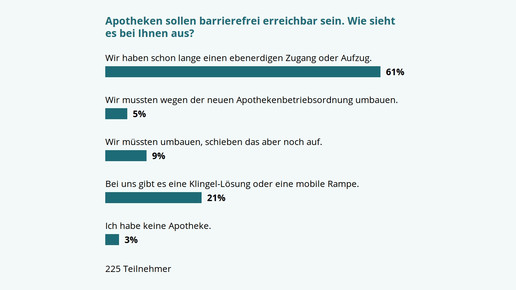 Nur jede fünfte Arztpraxis ist laut Bundesgesundheitsministerium (BMG) barrierefrei. Deutlich besser sieht es in den Apotheken aus: Zwar liegen der ABDA keine Zahlen vor, aber aus Sicht von Pharmazierat Christian Bauer ist der größte Teil der Apotheken bereits barrierefrei. Der Vorsitzende der Arbeitsgemeinschaft der Pharmazieräte Deutschlands (APD) hofft auf die Einsicht der Kollegen: Von der Barrierefreiheit würden die Apotheker selbst profitieren, ist Bauer überzeugt.