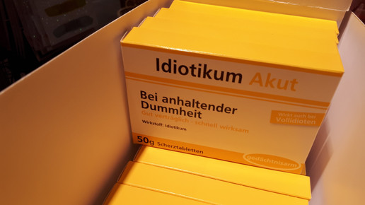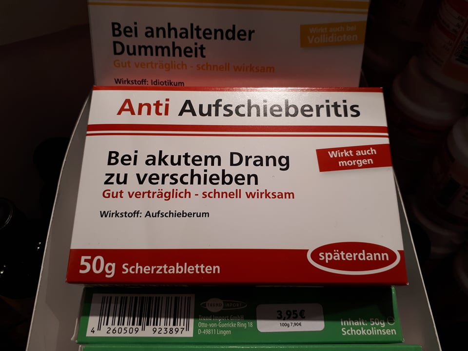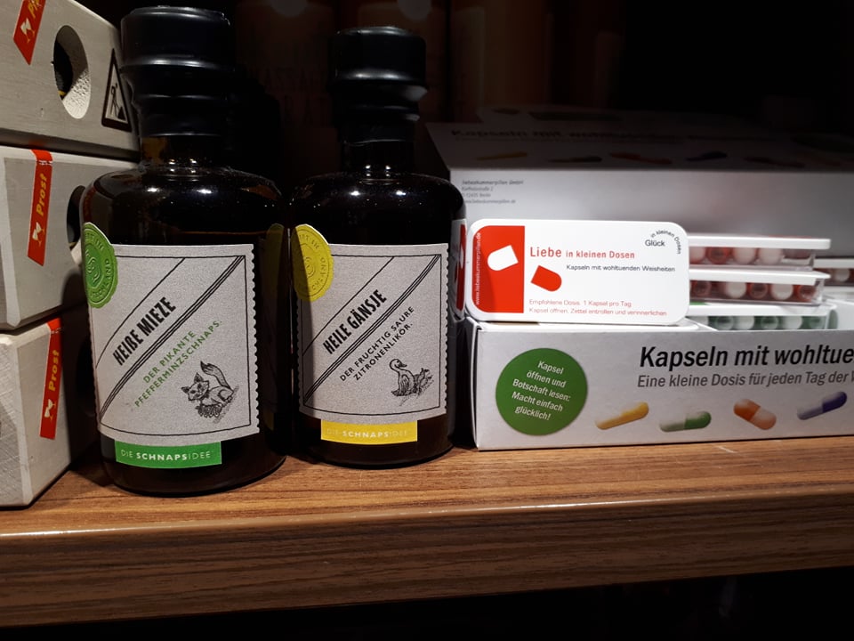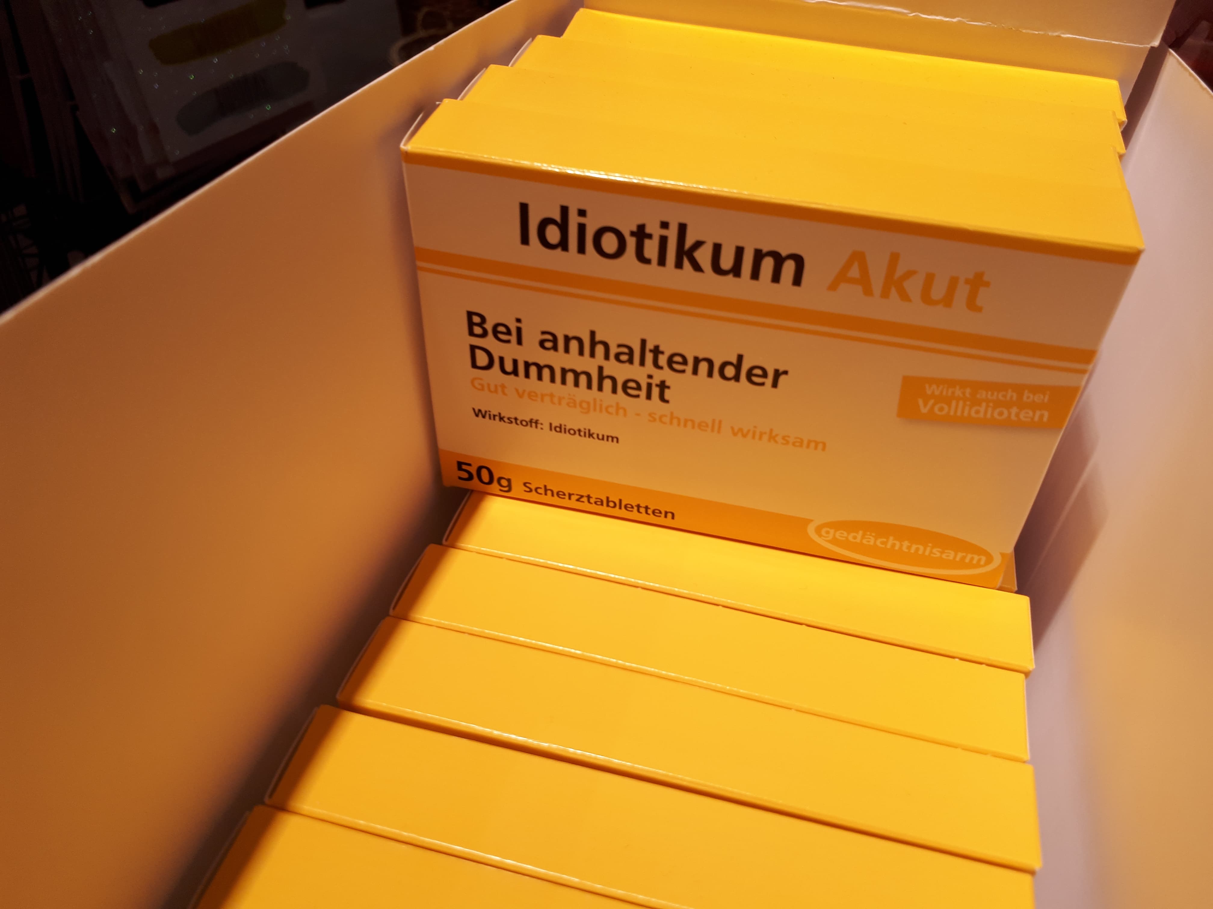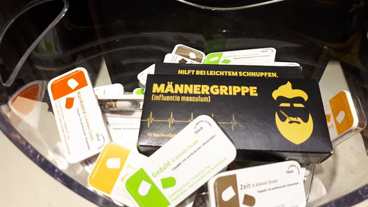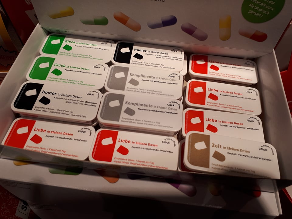 Ein bekannter Geschenkartikel-Laden zeigt in seinem Sortiment immer mehr Present-Ideen im Apothekendesign oder in Pillen Form. Bei den verschiedenen Indikationen findet sich mit Sicherheit das richtige Geschenk für den mehr oder weniger beliebten Kollegen oder Chef.