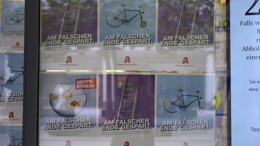 Zahlreiche Apotheken im Saarland haben am Mittwochnachmittag gestreikt. Die Teams informierten mit Plakaten, Flyern und vor den Betrieben über die Gründe des Protests.