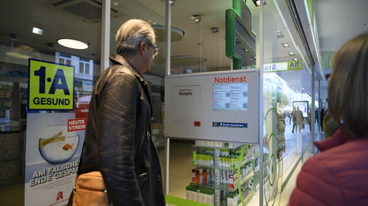 Die Kund:innen mussten heute auf die Notdienstapotheken ausweichen.Foto: Jennifer Weyland