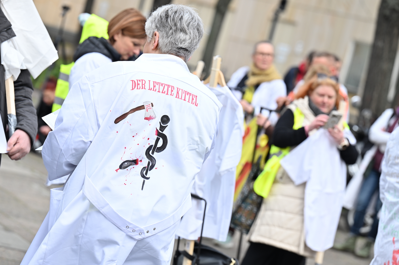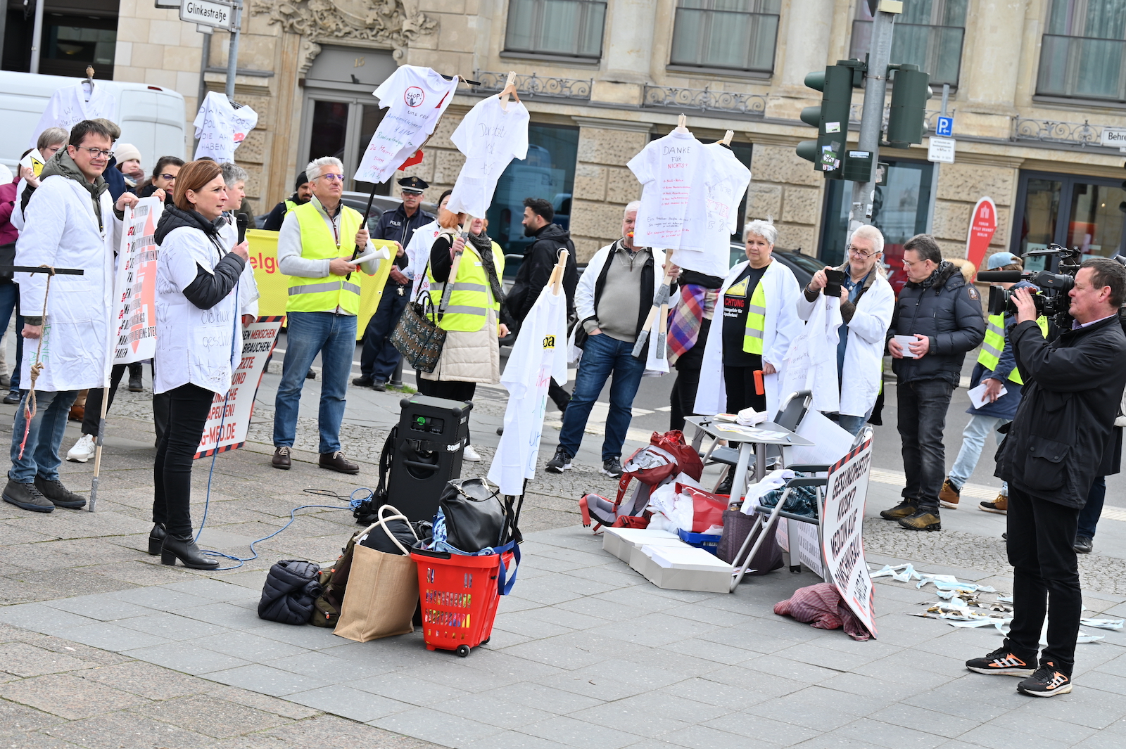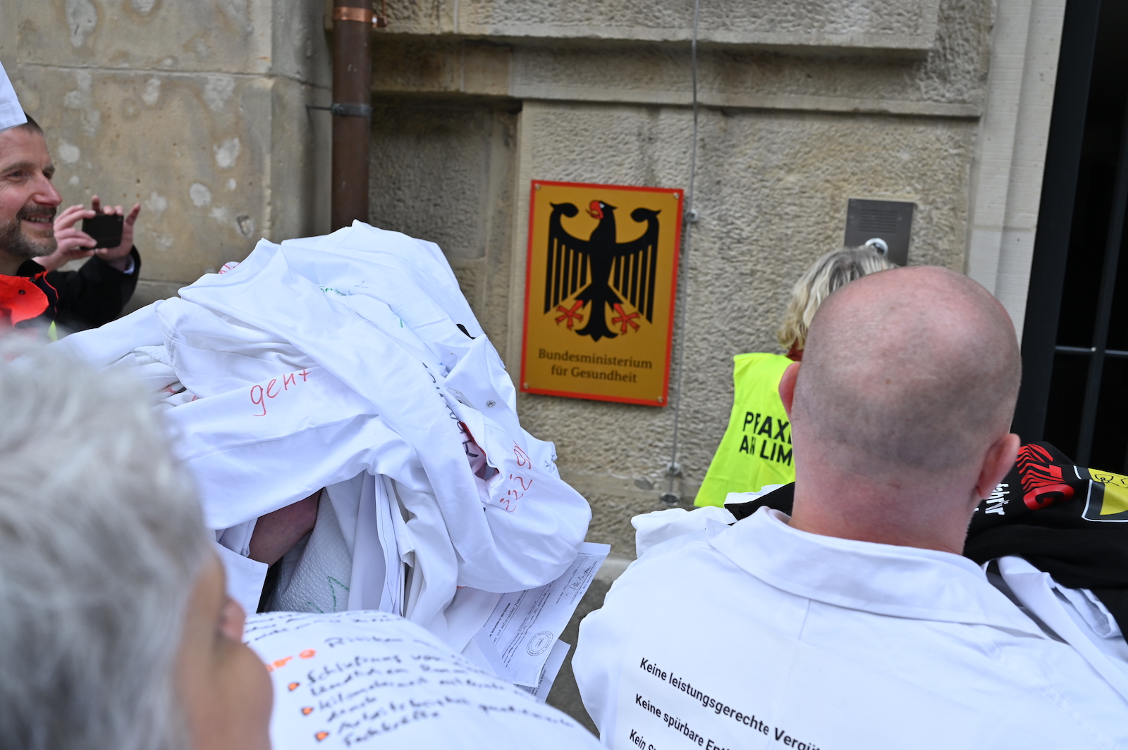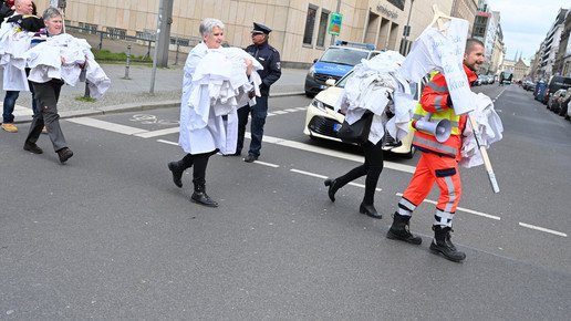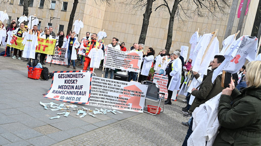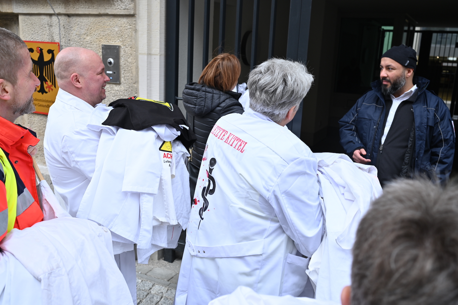 Fachkräftemangel, unzureichende Honorierung und eine überbordende Bürokratie zählen zu den zentralen Themen der Aktion „Der letzte Kittel“. Die Kundgebung und Übergabe in Bildern.