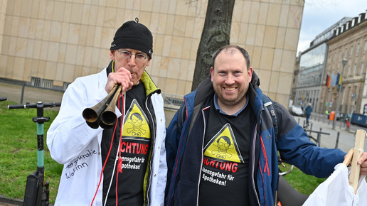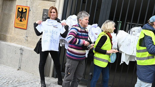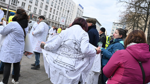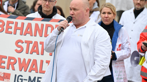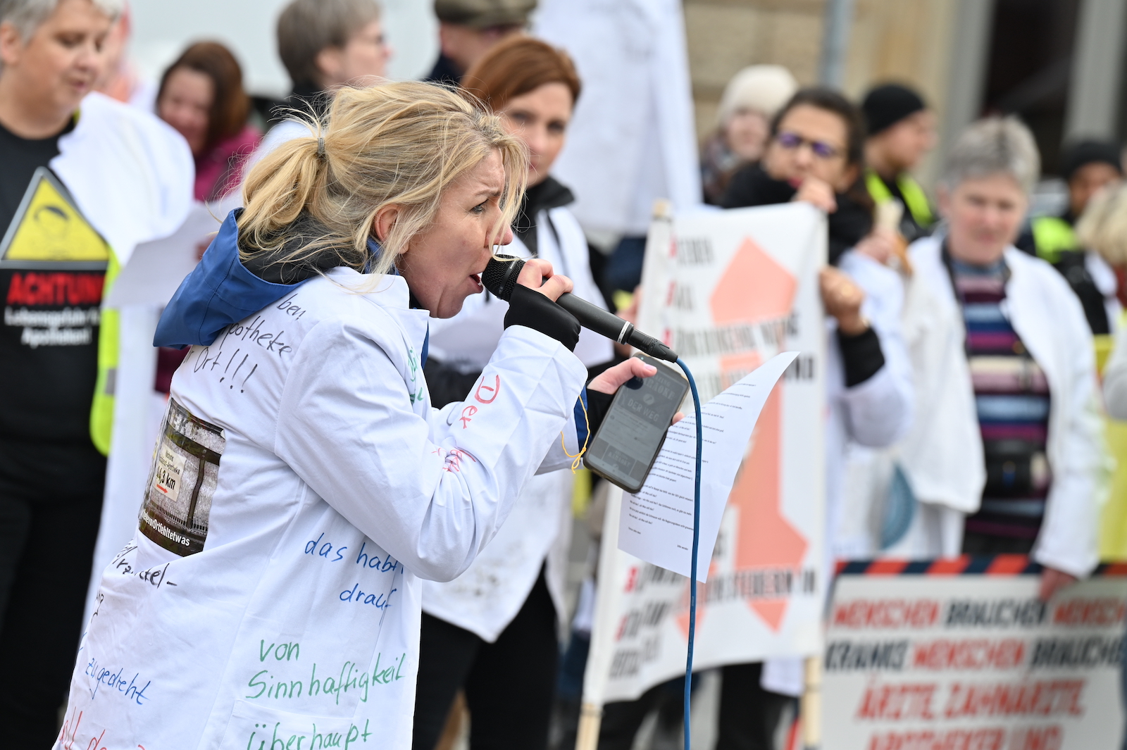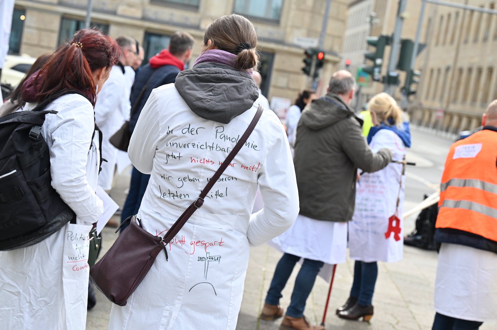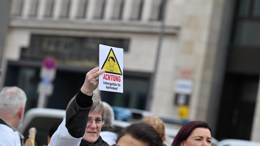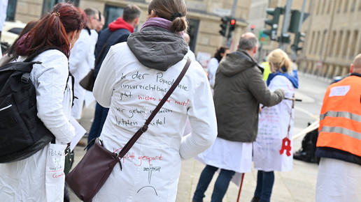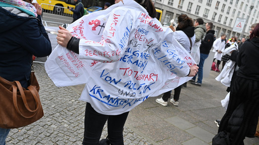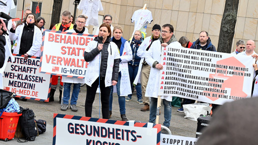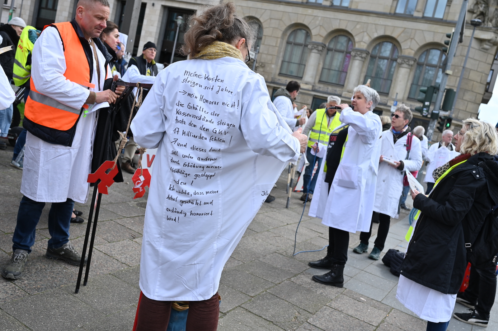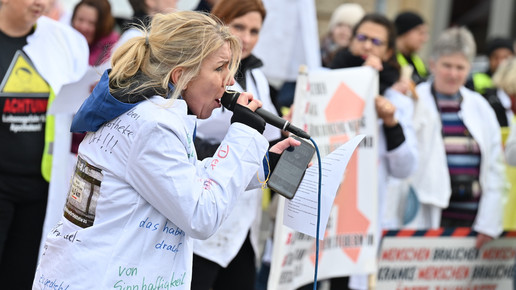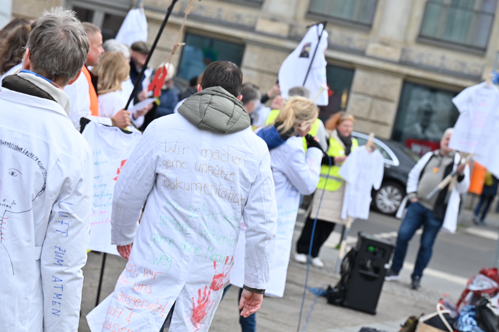 Fachkräftemangel, unzureichende Honorierung und eine überbordende Bürokratie zählen zu den zentralen Themen der Aktion „Der letzte Kittel“. Die Kundgebung und Übergabe in Bildern.
