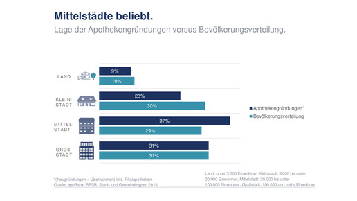 Die meisten Neueröffnungen und Übernahmen waren 2016 in Städten mit bis zu 100.000 Einwohnern zu verzeichnen.Grafik: Apobank