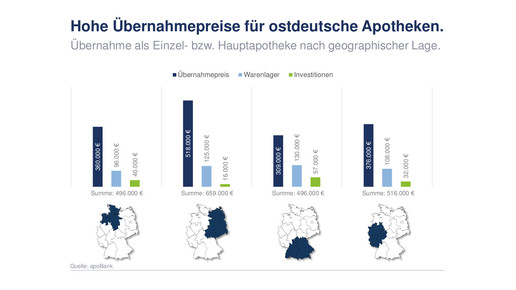 2017 gab es hohe Übernahmepreise für Apotheken in Ostdeutschland.Grafik: Apobank