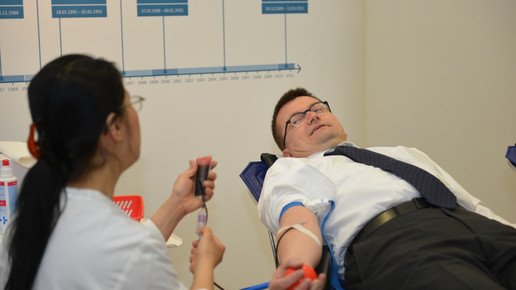 Im Bundesgesundheitsministerium (BMG) wird heute Blut gespendet. Die Hausleitung ging mit gutem Beispiel voran.