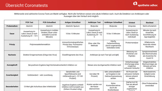 Neben dem Goldstandard der PCR-Methode kann mittlerweile auf relativ sichere Antigen-Schnelltests zurückgegriffen werden. Auch Antikörper können per Schnelltest bestimmt werden. Hier sollte auf eine Auswertung im Labor oder mittels CE-zertifiziertem PoC-Testgerät zurückgegriffen werden.