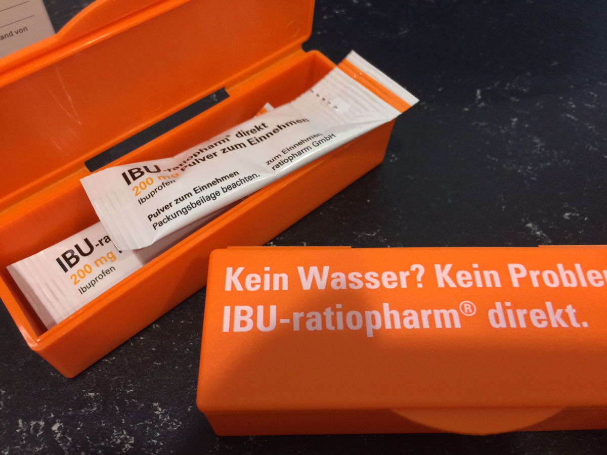 Zur Neueinführung von Ibuprofen als Direktgranulat verschenkt Ratiopharm Aufbewahrungsboxen.Foto: APOTHEKE ADHOC