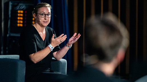 Auch im Netz prägen Mitarbeiter die Marke ihres Unternehmens, deshalb bat Bellartz die nächste Speakerin auf die Bühne.Foto: Andreas Domma
