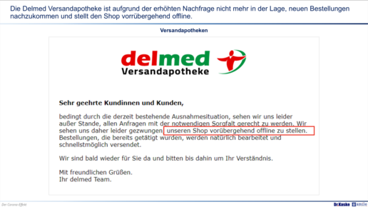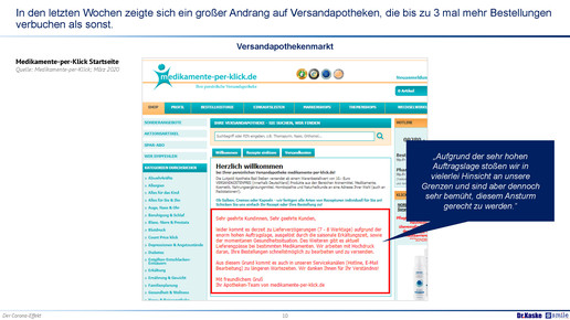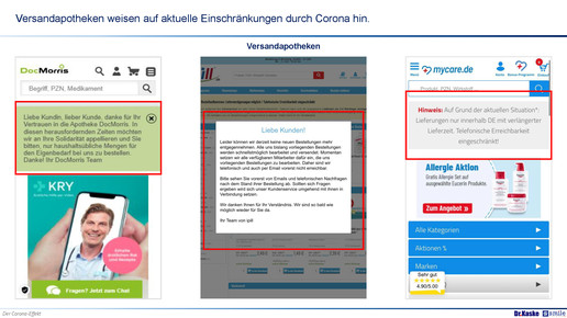 Der Corona-Effekt: Versandapotheken haben deutlich mehr Zulauf an Kunden – und sind dem nicht immer gewachsen.Grafik: Dr. Kaske