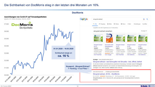 Die Sichtbarkeit von DocMorris hat in drei Monaten um 16 Prozent zugelegt.Grafik: Dr. Kaske