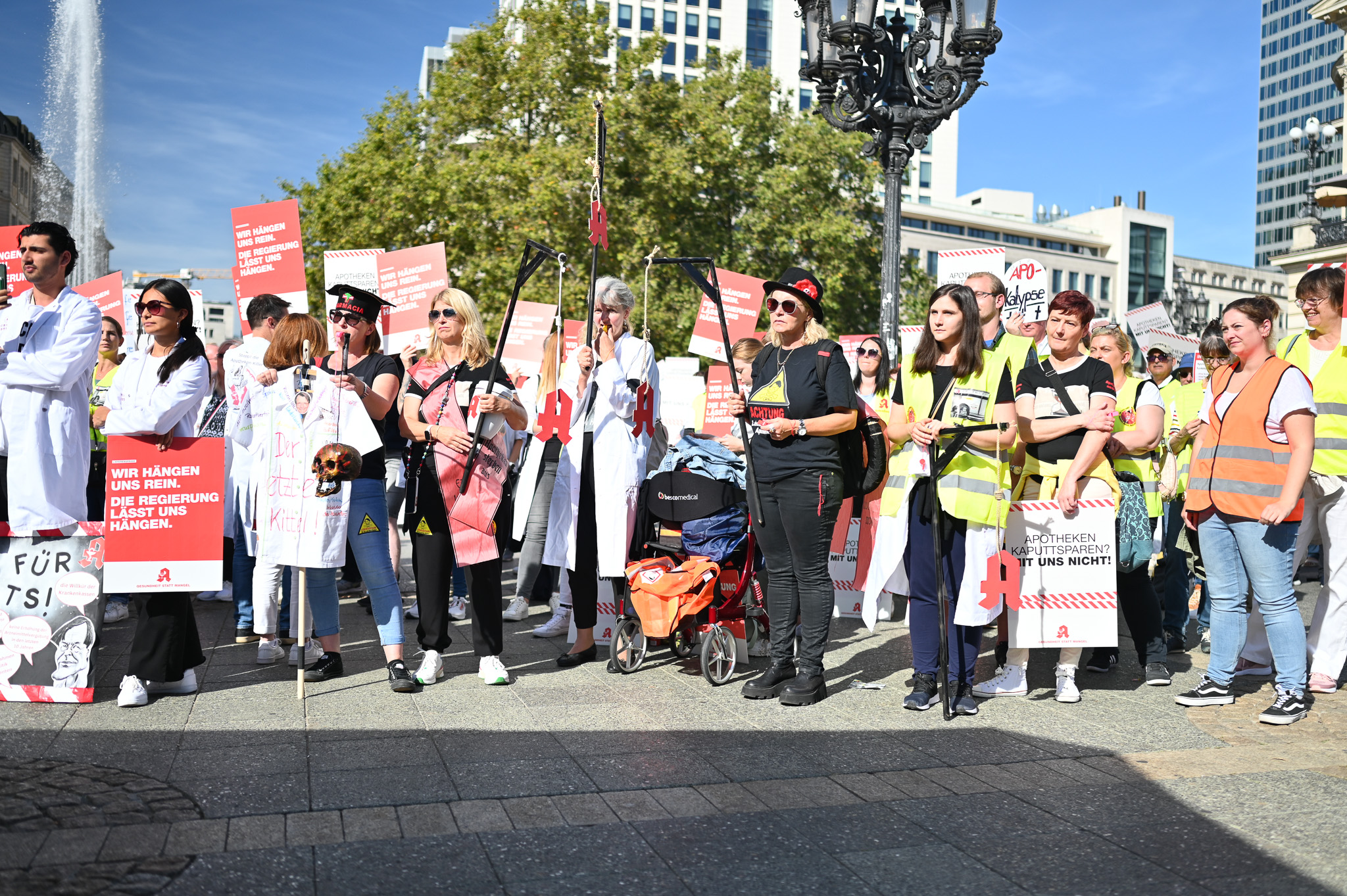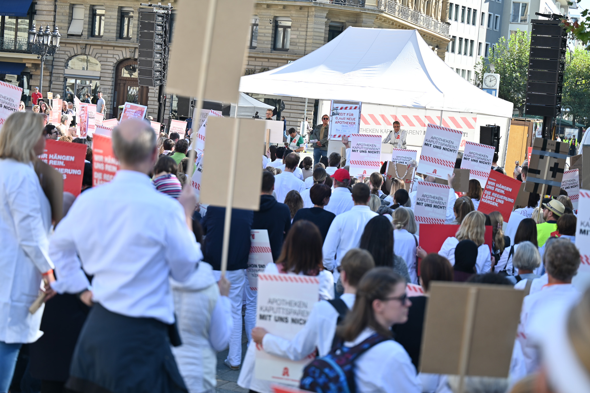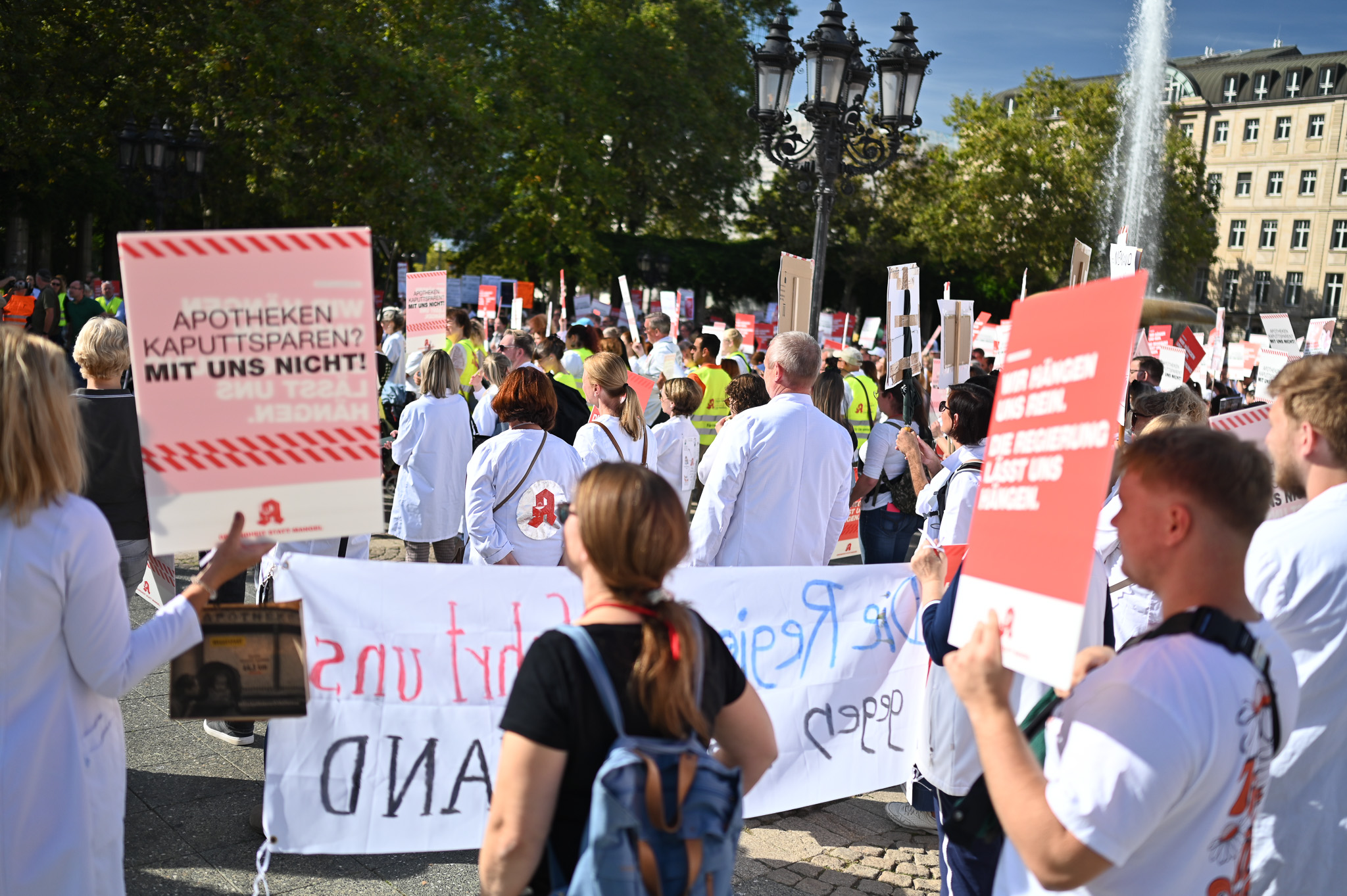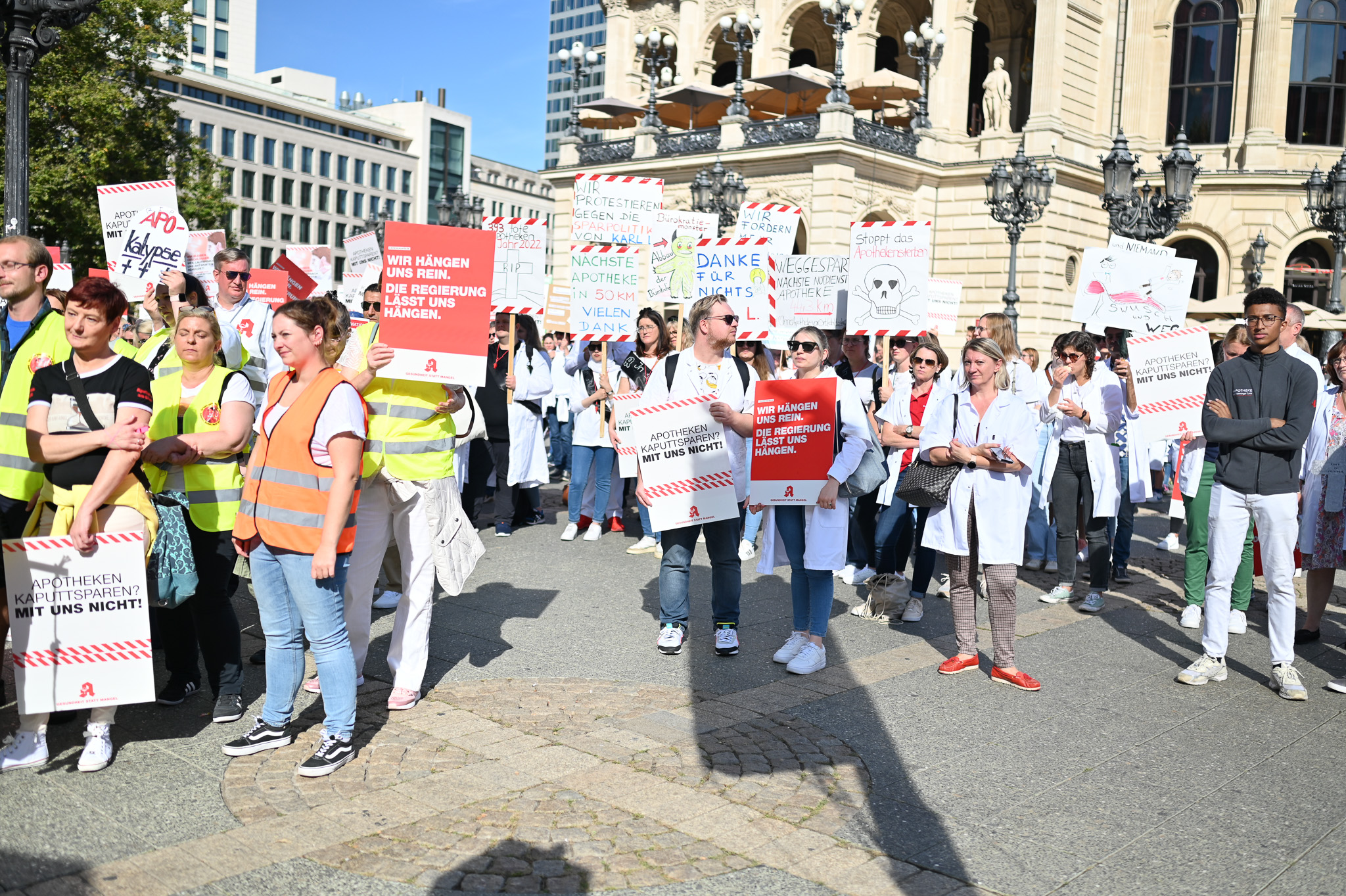 In Hessen blieben heute zahlreiche Apotheken geschlossen, die Teams versammelten sich zur Kundgebung vor der Alten Oper. Hunderte kamen zusammen, um ihrem Protest gegen die Gesundheitspolitik von Karl Lauterbach (SPD) Ausdruck zu verleihen.
