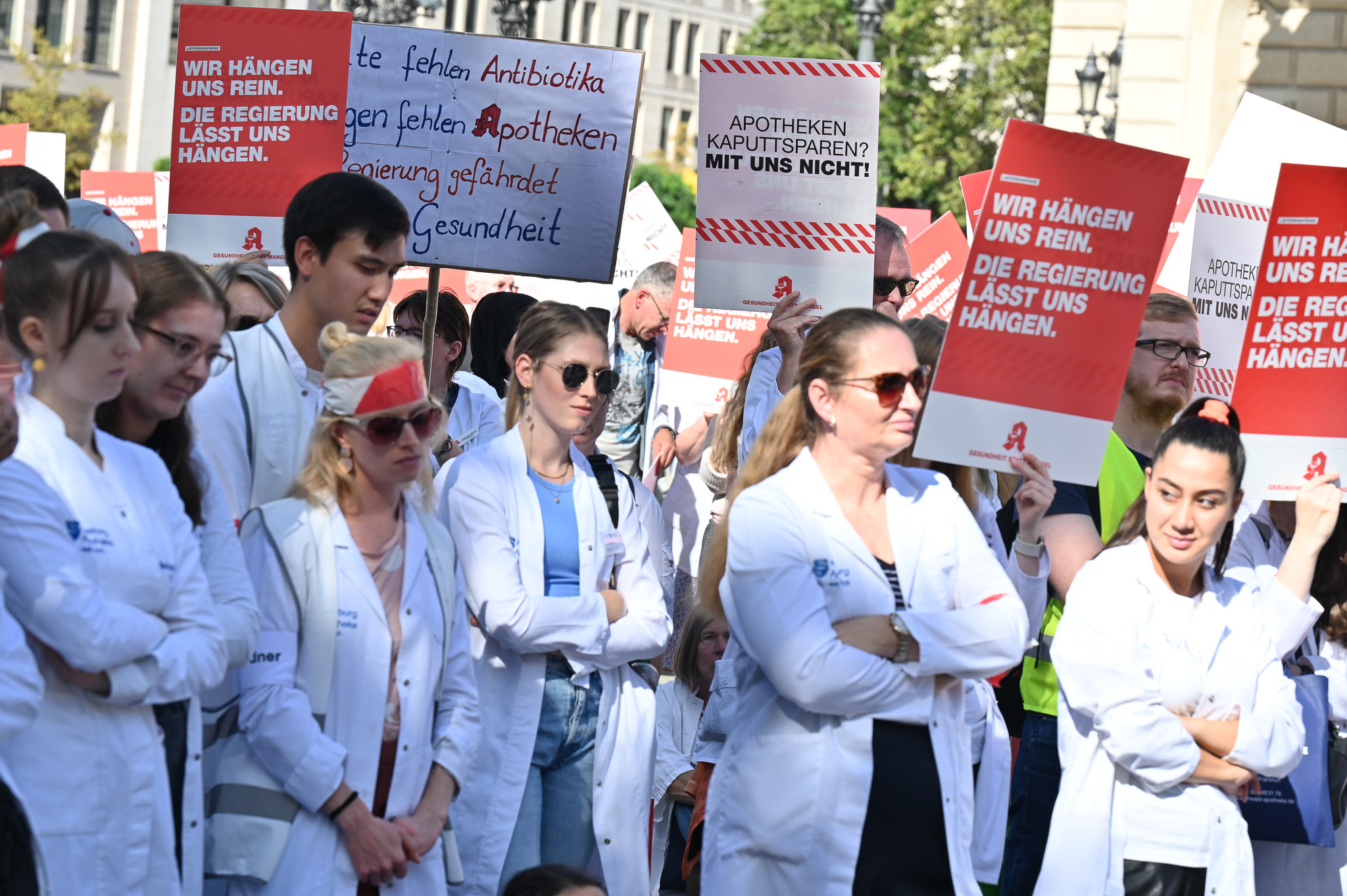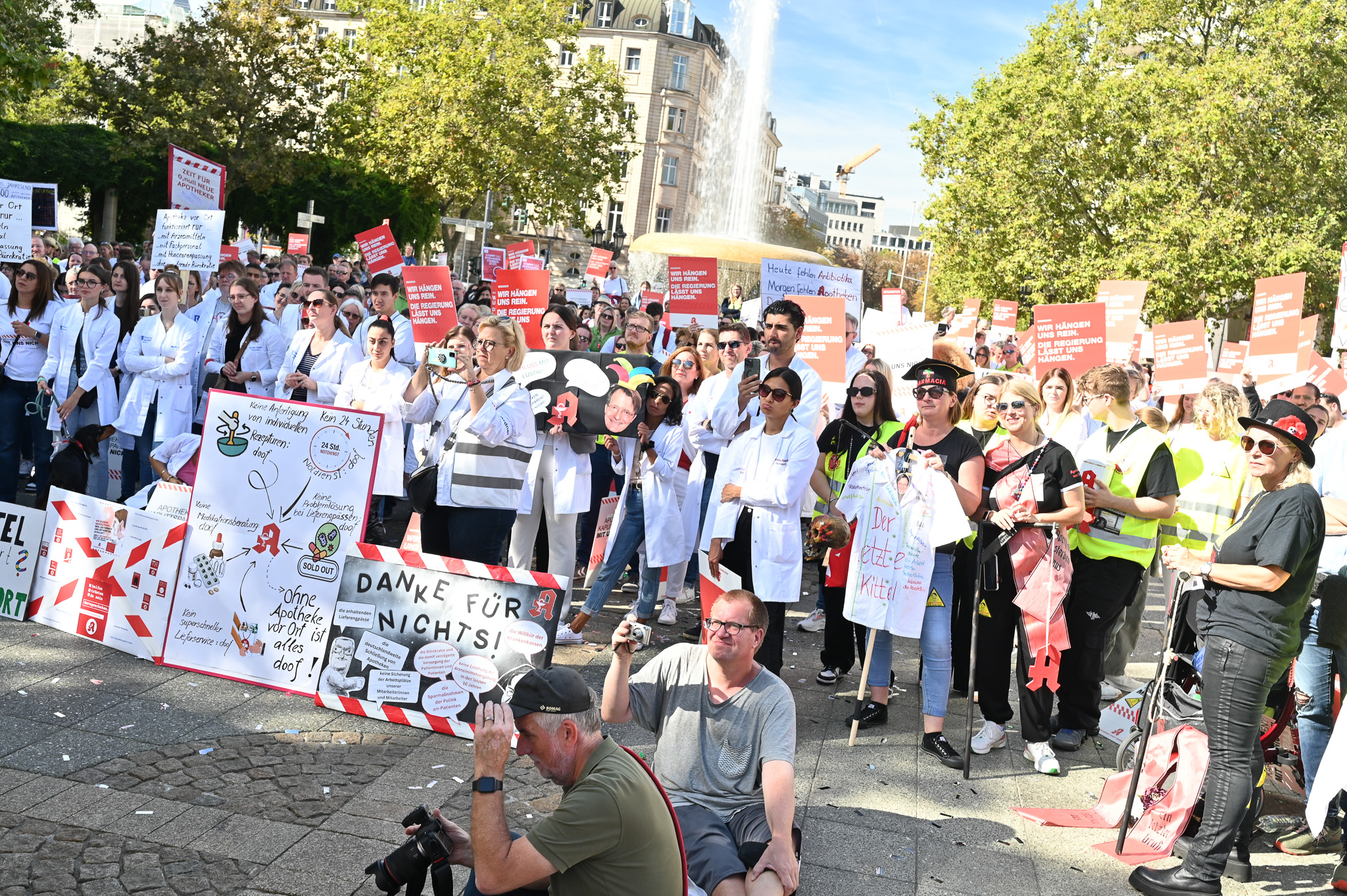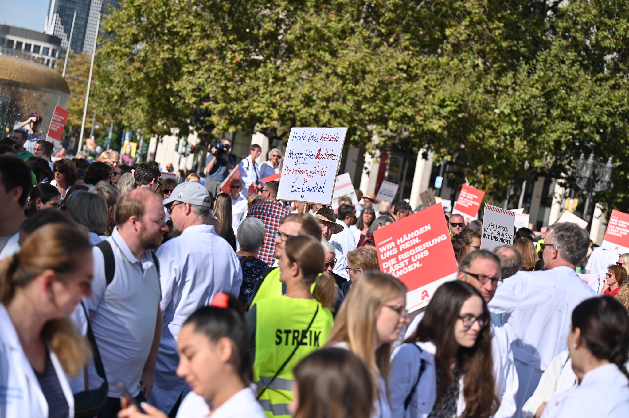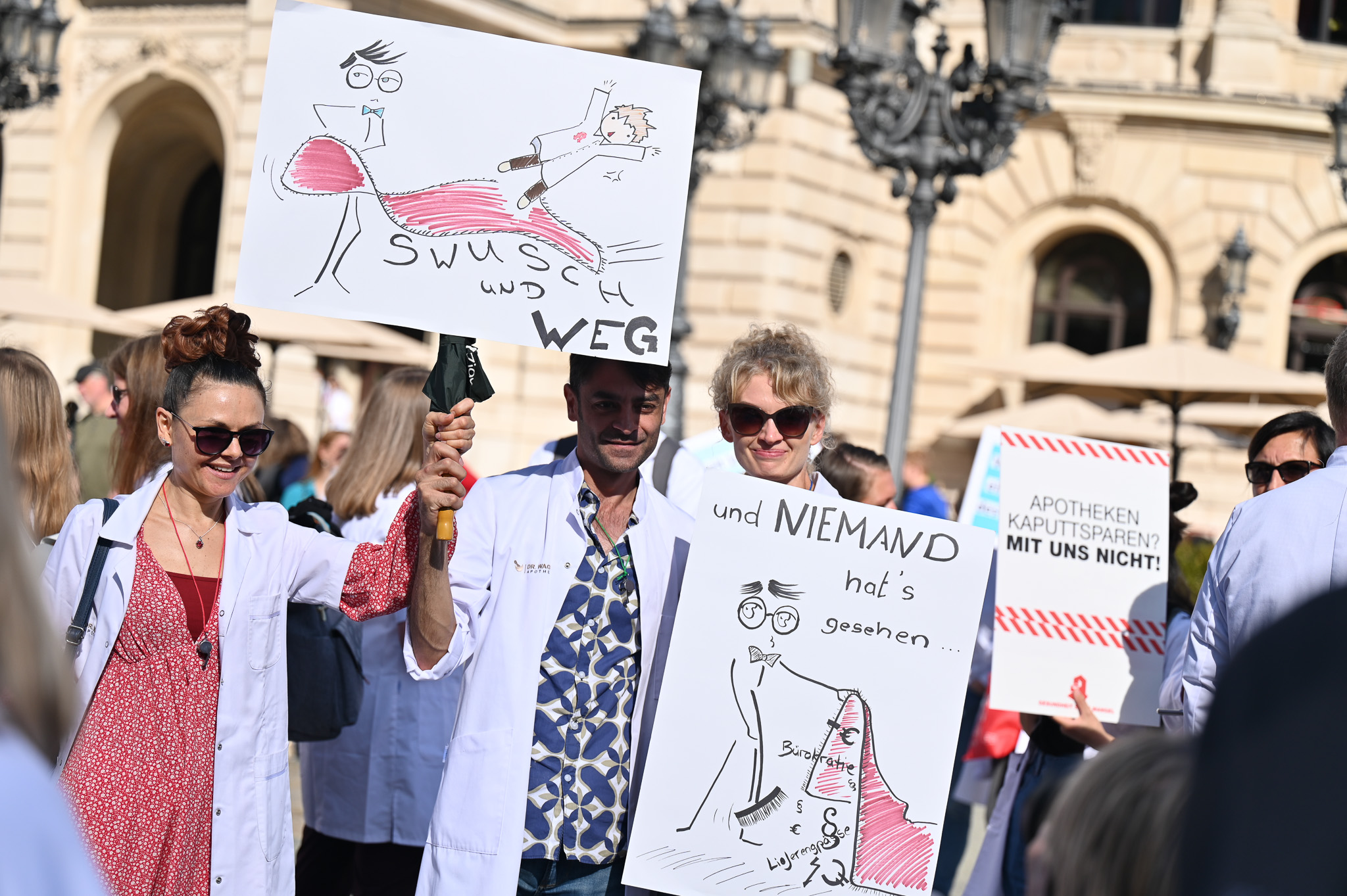 In Hessen blieben heute zahlreiche Apotheken geschlossen, die Teams versammelten sich zur Kundgebung vor der Alten Oper. Hunderte kamen zusammen, um ihrem Protest gegen die Gesundheitspolitik von Karl Lauterbach (SPD) Ausdruck zu verleihen.